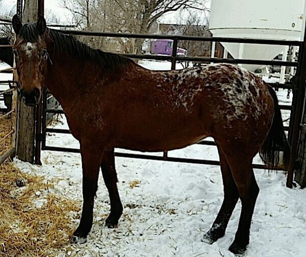 Fancy Pretty and Loud Colored, Bred Great and would make a great addition to your broodmare herd. She is Heavy Muscled, Big Boned; Halter broke and has Great Manners. Mighty Tim-High Point Halter & Performance Grand & Res. Champion at Halter ApHC Champion Sire World & Natl Ch. Sire FPD 10%. White with spots over loin and hips.