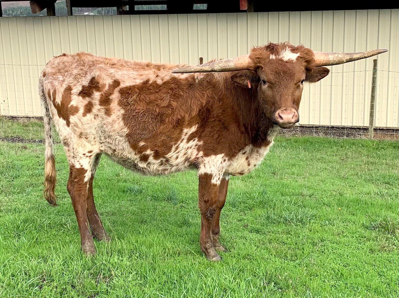 COMMENTS: Just turning two years old at sale time Martina is an exciting Tuff and Grande 2/15 daughter from the top of our 2020 calf crop. Bottom side of the pedigree goes back to Cowboy Casanova and no other than RM Heavy Touch. Her horns measured 30.5” at 12 months and 42” T2T at 17 months - they are flat and start to twist. Calm disposition - not exposed. More info on feylonghorns.com.