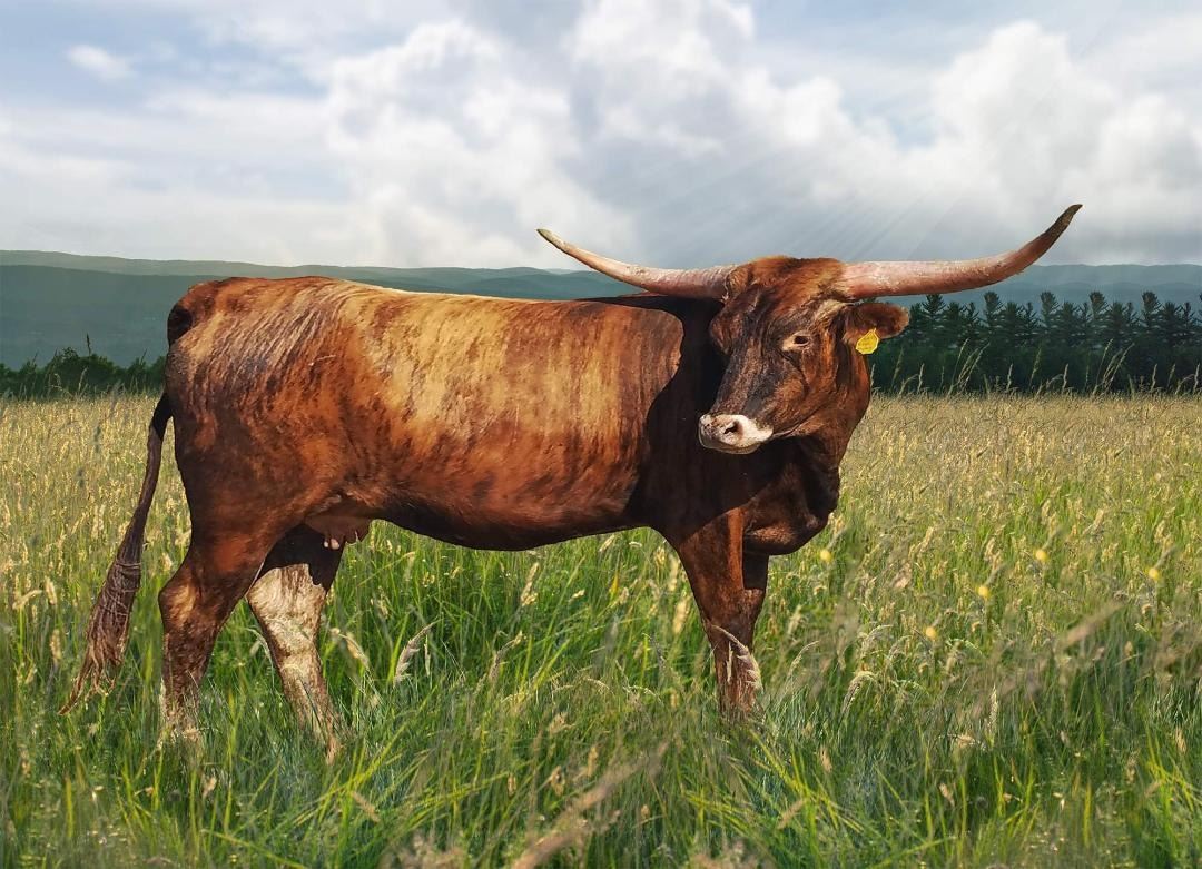 and white speckled. This mating should produce a great calf.