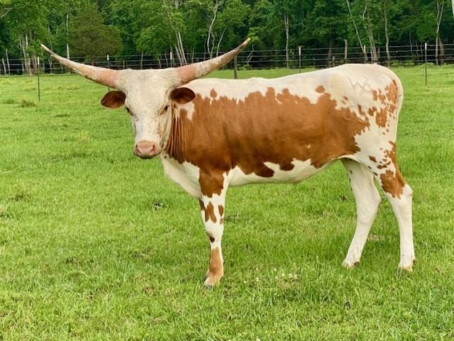 2024 heifer displaying the hooked back horn set we love so much. Bonnie is sired