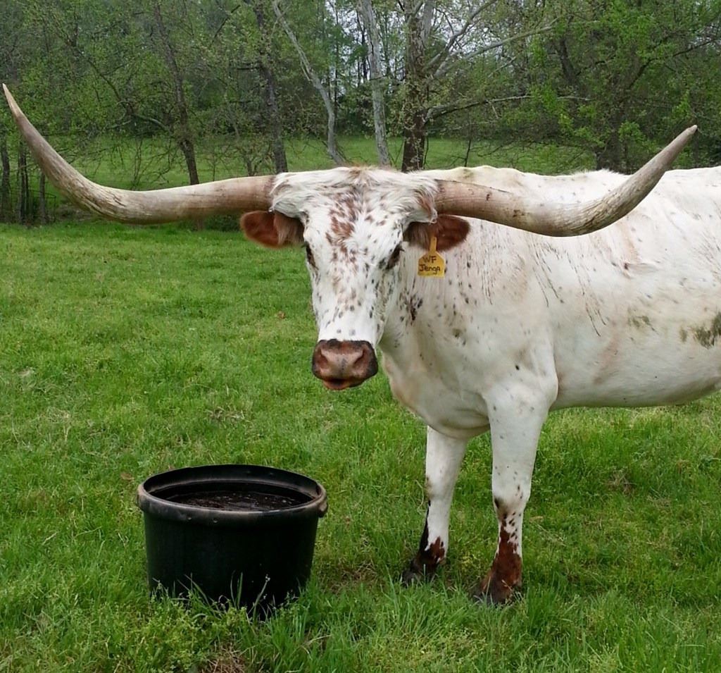 OCV'd. Not exposed. This Boomerang daughter has a great presence in the pasture with an impressive horn base and TTT, long body and tall stature. She calves easily and produces some beautifully colored calves. Click to View