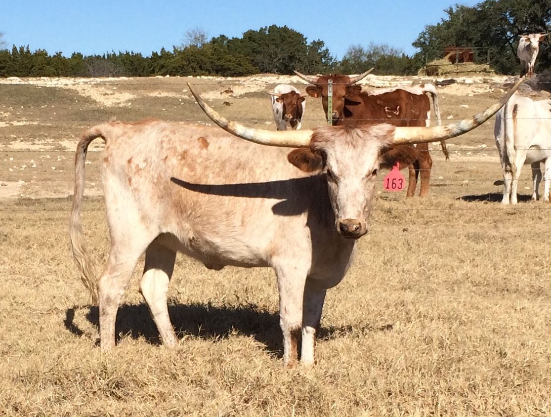 This is a Red Roan young lady that is as pretty as they get. She is a Sittin Bull granddaughter, so get ready for some horns. Very gentle and easy to keep. click to view more