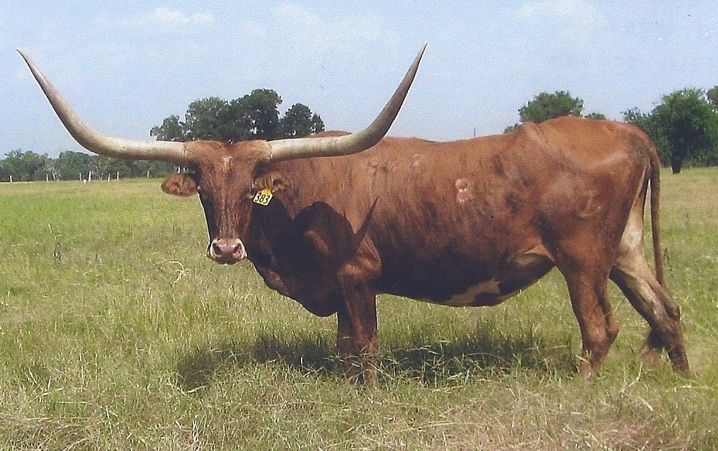 Big, brindle, and gentle. Horns measured on 7/12/14 showed 68-1/2" TTT and 13" bases. Palpated same date safe in calf to TX W Storm Trooper, our 78" winner of the 2012 World Championship, Div II for total horn. Loaded pedigree including G-Man, Inez of Acampo, Delta Judy and Gun Smoke, Millennium Futurity qualified.