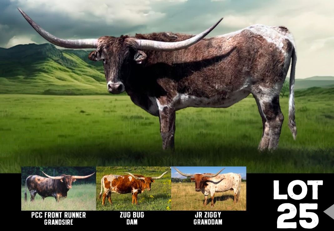 COMMENTS: Ziggy Star is a JR Ziggy granddaughter with a stacked pedigree of legendary longhorns. She has the ideal bone structure and body mass we are breeding for. She would make a great addition to any herd. She is bred to 3-time HSC winner Golden Boy CRL. Current measurements at time of sale.